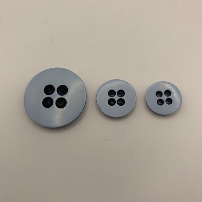 Bottone azzurro chiaro con fori blu